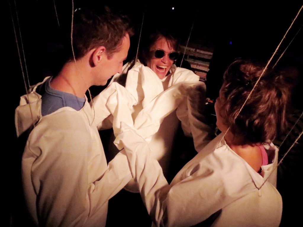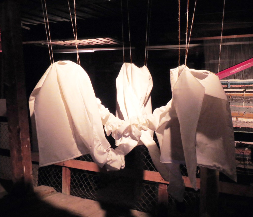 >> Elena Carr’s artistic explorations always revolve around real societal challenges with social, political and ethical questions, which she translates into spatial and often interactive works and allows to emerge in different levels of reality. With a group straitjacket (Gruppenzwangsjacke) she explores the relationship between conformity, collaboration and social utopia. The metaphorical object stands or hangs on its own as an autonomous textile sculpture, but is also suitable as a costume or prop for participatory performances. <<